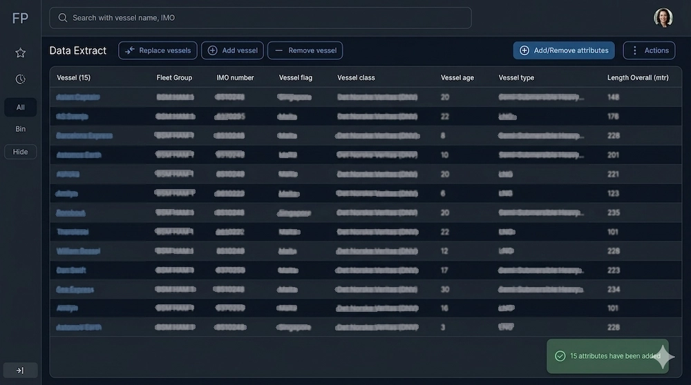 The first was a configurable cross-fleet analysis table. Users could define the columns to match the question they were trying to answer at that moment — comparing scheduling, crew, positioning, and operational data across any selection of vessels simultaneously. The data architecture that made it possible also opened a direct path to a future where a user asks an AI a question and receives the answer in text summary and a table configures itself in response.