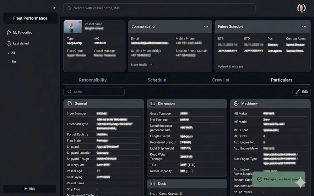 The second was role-based vessel favouriting — operations managers, fleet teams, and individuals each maintaining their own curated group of vessels for fast navigation across a fleet of 300. A feature that sounds simple until you consider that eight global offices and multiple management layers each have a different answer to the question: which vessels matter to me right now.