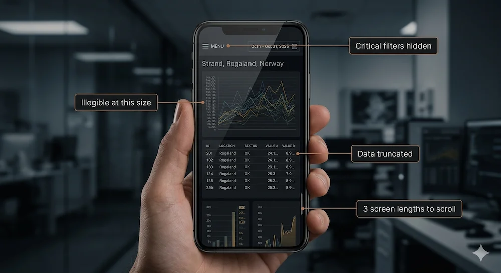 The mistake is not building dashboards. The mistake is assuming that a responsive version of a dashboard is the same as designing for the context in which it will actually be used.